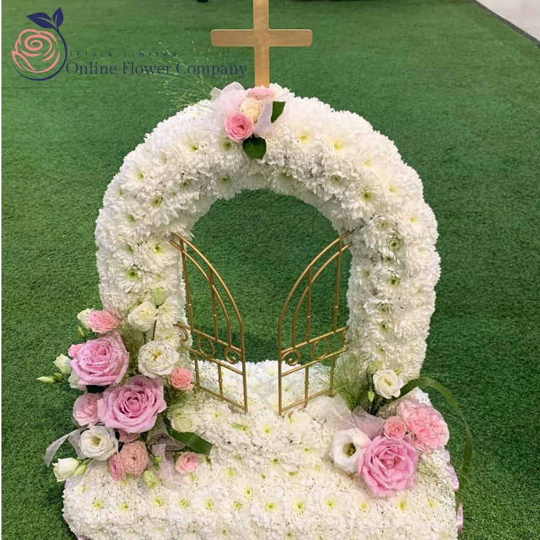 Also, This tribute evokes the image of the gates of heaven, symbolizing eternal peace. Therefore, it is perfect for funerals and memorial services, offering a respectful way to express condolences.