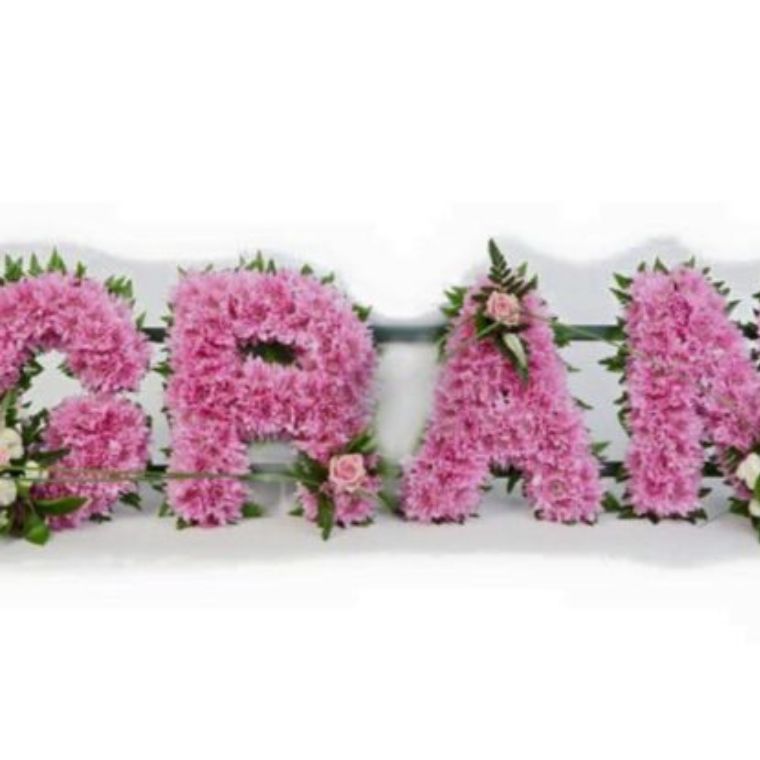 This heartfelt Gran Funeral Flowers Tribute is a touching and personalized way to honor the memory of a beloved grandmother. It features a beautiful floral arrangement spelling out “Gran,” crafted with delicate Pink Carnations and accented with Pink Roses and White fillers. Also, this tribute symbolizes love, remembrance, and a fond farewell. We also offer a variety of sizes and can personalize your tribute with specific flower choices