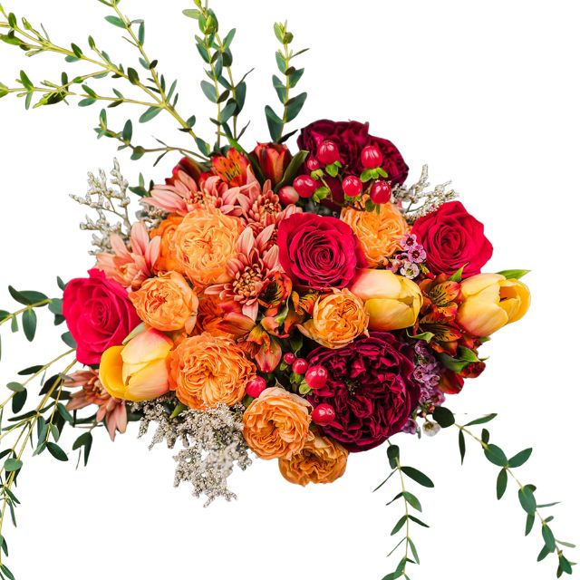 Our orange pink red flower bouquet delivery is the perfect gift to brighten someone’s day. This stunning bouquet features a vibrant mix of orange, pink, and red blooms that create a lively and cheerful display.
