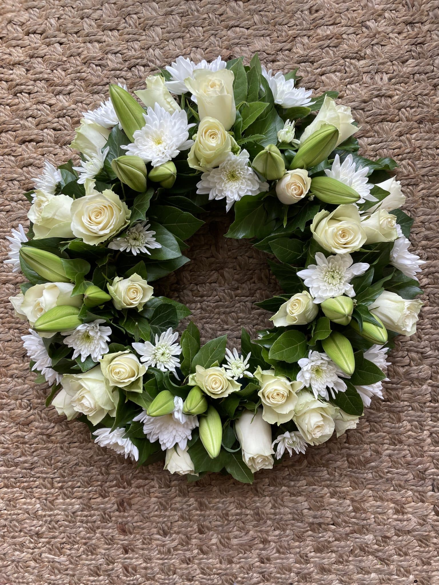 White Rose and Lily Funeral Flower Wreath White Rose and Lily Funeral Flower Wreath