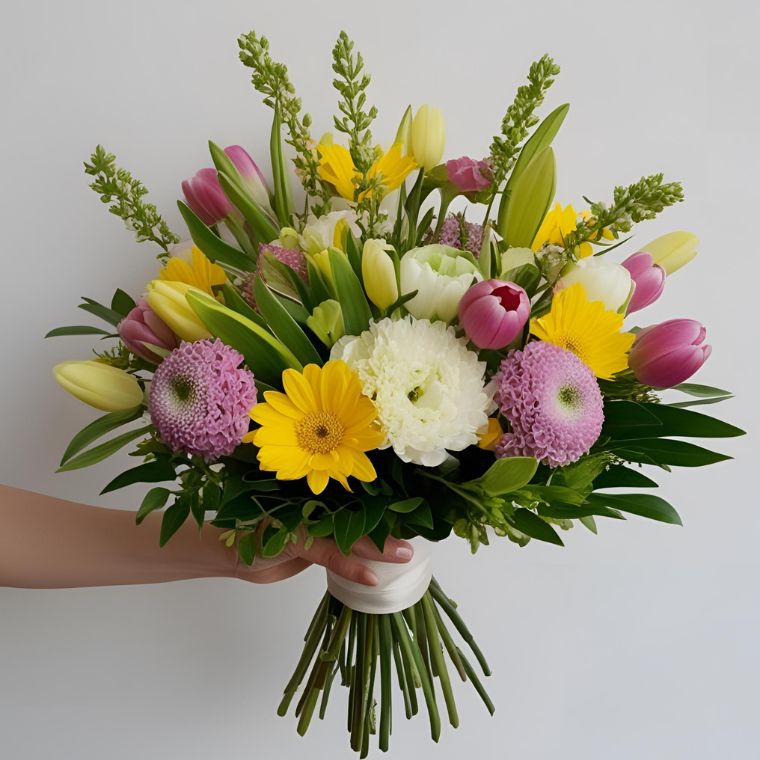 Bring joy with the Tulip Gerbera Chrysanthemum bouquet delivery UK – a vibrant arrangement of fresh tulips, gerberas, and chrysanthemums. Designed in a beautiful, hand-tied style, this bouquet bursts with colour and charm. Perfect for birthdays, thank-you gifts, or simply showing you care.